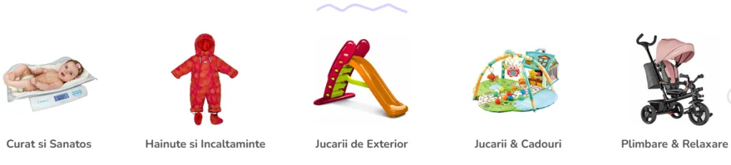 Nu lipsesc nici jucariile – educative, din lemn, muzicale, pentru exterior sau interior – si nici produsele pentru parinti, precum pernele pentru gravide sau accesoriile de alaptare. Gama se completeaza cu articole pentru curatenie si igiena, produse resigilate la preturi mici si idei de cadouri speciale.