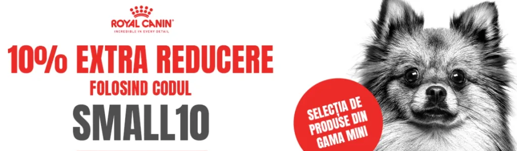 - Extra reducere -10% la gama mini Royal Canin pentru catei – codul “SMALL10“